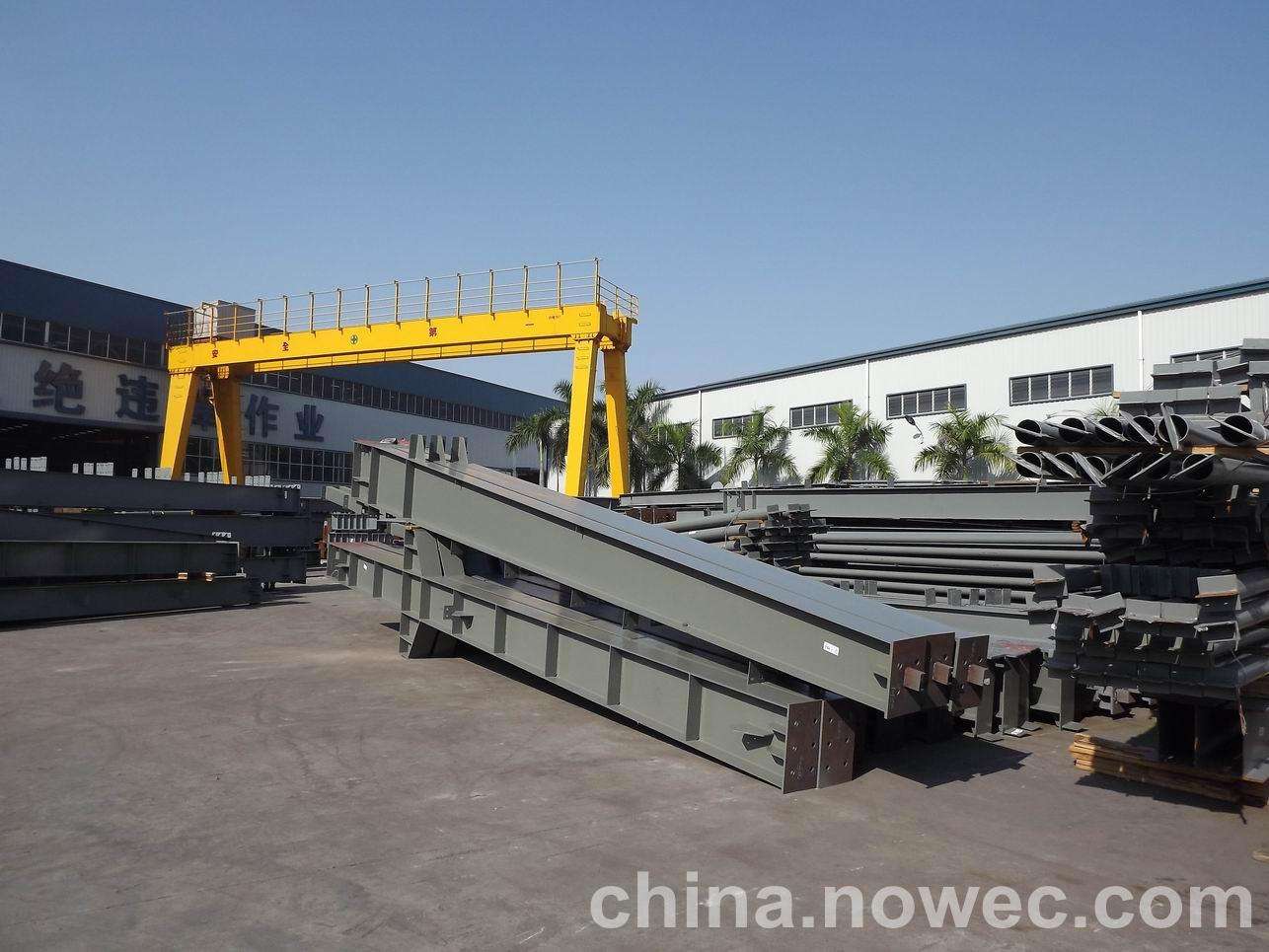 条状单元一般沿长跨方向分割,其宽度约为1~3个网格,其长度为l2或l2/2(l2为短跨跨距)。块状单元一般沿金华网架平面纵横向分割成矩形或正方形单元。每个单元的重量以现有起重机能胜任为准。条(块)与条(块)之间可以直接拼装,也可空一网格在高空拼装。由于条(块)状单元是在地面拼装,因而高空作业量较高空散装法大为减少,拼装支架也减少很多,又能充分利用现有起重设备,故较经济。这种安装方法适用于分割后网架的钢度和受力状况改变较小的各类中小型网架,如两向正交正放四角锥、正放抽空四角锥等网架。